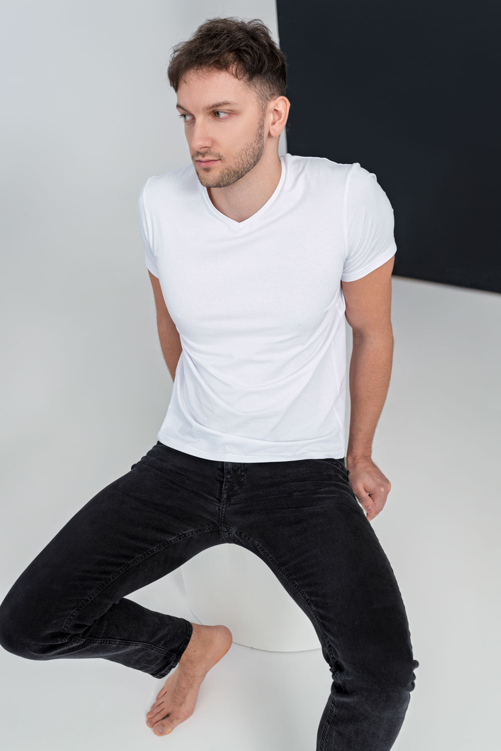 Męski t-shirt z dekoltem w literę v wykonany z dzianiny 94% bawełna 6% elastan poddany procesowi merceryzacji, czyli uszlachetnianiu, jest przyjemnym uzupełnieniem męskiej garderoby. Materiał o gramaturze 160g delikatnie otula skórę, a dzięki procesowi merceryzacji jest przyjemny w dotyku, zabezpieczony przed pilingowaniem i dobrze się układa.